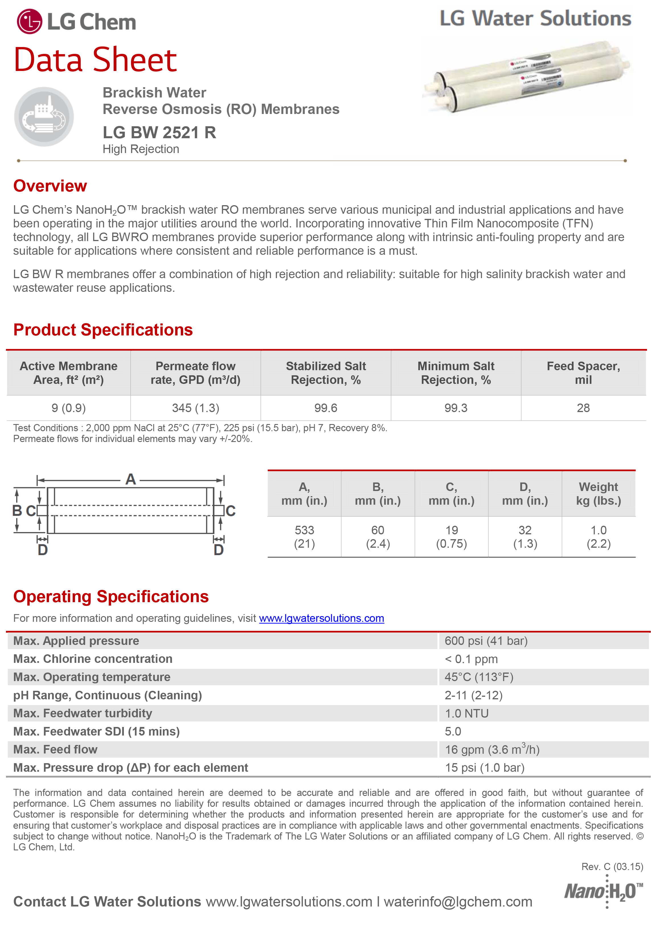 High Rejection |LG BW R membranes offer a combination of high rejection and reliability: suitable for high salinity brackish water and wastewater reuse applications.